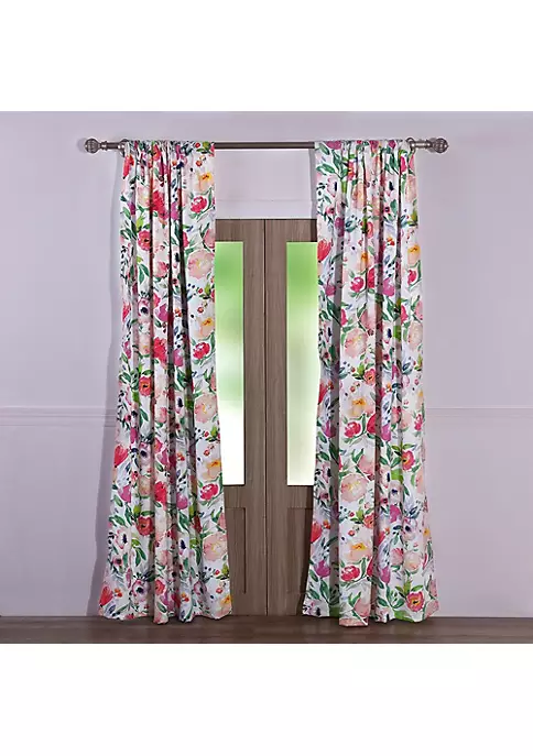 Dainty Home Stella Chenille Floral Embroidererd Linen Look Light Filtering Window Panel Pair