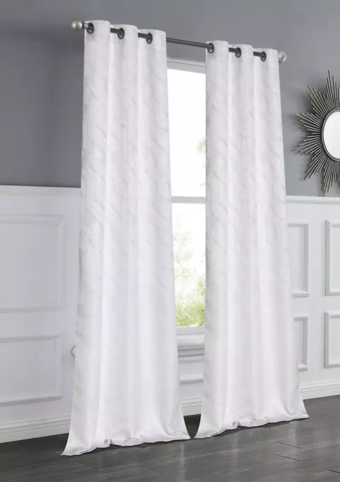 Dainty Home Palm Leaf Lurex Emroidered Room Darkening Window Panel Pair