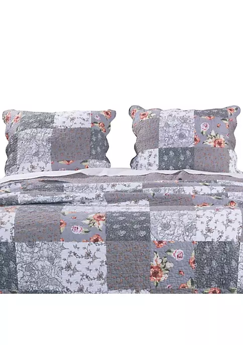 Spoil yourself with casual elegance! The Giulia quilted pillow sham features fabulous floral and stencil prints on fashionable white and gray, for a look that is refined without being showy. Printed in a classic patchwork pattern to coordinate with a variety of color schemes, each sham reverses to an all-over ditsy floral print for two looks in one. Decorative quilting enhances the durability of each piece. 100% cotton face; 100% ultra-soft microfiber polyester back; 60% Cotton, 40% Polyester cotton-rich fill. Size: 20×26 inches. Available size – King 20×36″. Color: Gray.