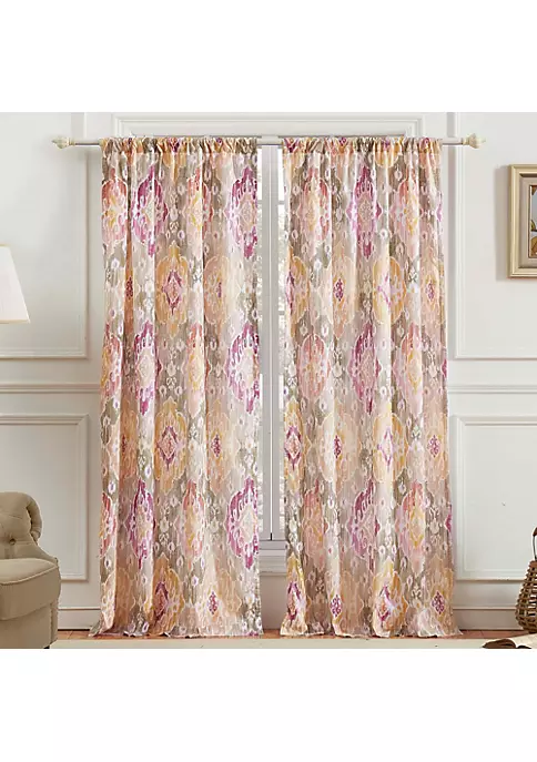 Dainty Home Stella Chenille Floral Embroidererd Linen Look Light Filtering Window Panel Pair